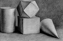 - 石膏素描 通過對石膏模特的寫生訓練,掌握形體塑造的基本技能,由于是單色對象,可以避免其色彩的干擾,從而把主要精力放在形體與明暗關系的表現上。